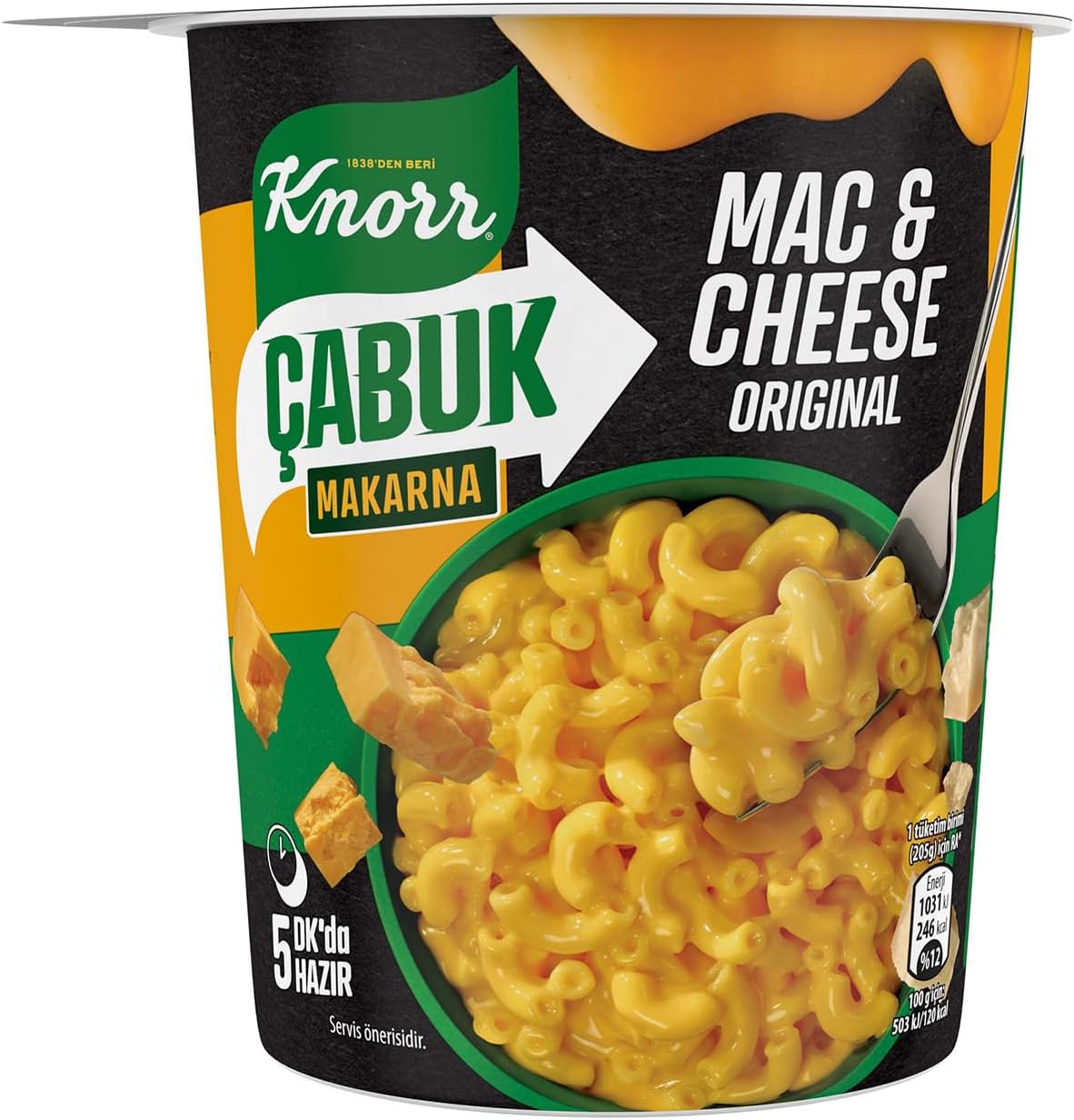 پاستای کنور کوئیک مک و پنیر با سس، یک غذای پاستایی است که در عرض ۵ دقیقه آماده میشود. این غذا شامل پاستا (گندم دوروم، آب)، پودر پنیر (لبنی)، نشاسته، پودر چربی (روغن گیاهی، شربت گلوکز، پروتئین شیر)، نمک یددار، پودر آب پنیر، عصاره مخمر، طعمدهندهها (لبنی)، آرد برشته (آرد گندم، روغن گیاهی)، پودر شیر بدون چربی، نمک معدنی (پتاسیم)، مالتودکسترین، رنگها (کاروتن، عصاره پاپریکا)، پودر آب پنیر، شکر، پودر فلفل قرمز، سیر، فلفل سیاه، روغن گیاهی (پالم) و زردچوبه است. ممکن است حاوی مقادیر کمی تخم مرغ، خردل، سویا، بادام، فندق، کرفس، پسته و کنجد باشد